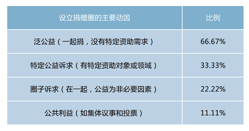 捐贈圈發(fā)起人設(shè)立捐贈圈的主要動因。源自《運(yùn)用捐贈圈激發(fā)公眾慈善參與的中國模式研究》