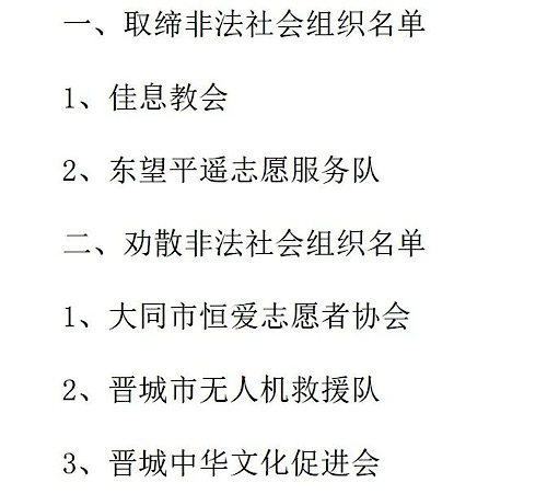 東望平遙志愿服務(wù)隊(duì)、大同市恒愛志愿者協(xié)會……又一批非法社會組織名單公布