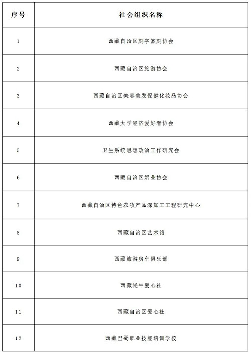例如,西藏自治區(qū)刻字篆刻協(xié)會、西藏牦牛愛心社、西藏自治區(qū)愛心社等12家社會組織,因連續(xù)兩年未按規(guī)定和時限向登記機(jī)關(guān)報送年度報告,依據(jù)《社會團(tuán)體登記管理?xiàng)l例》《民辦非企業(yè)單位登記管理暫行條例》等相關(guān)法規(guī),相關(guān)部門依法對其給予撤銷登記的行政處罰。同時,自公告之日起,以上社會組織不得以社會組織名義開展活動,社會組織法人登記證書正(副)本和印章自公告之日起作廢。名單如下: