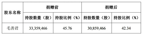 公告顯示,截至披露日,毛善君持有公司股份33359466股,占公司目前總股本的45.76%。為支持北京大學(xué)地球與空間科學(xué)學(xué)院教育事業(yè)的發(fā)展,更好地促進其教學(xué)科研和人才培養(yǎng)工作,毛善君與北京大學(xué)教育基金會于7月2日簽署捐贈協(xié)議,一次性向北京大學(xué)教育基金會無償捐贈其持有的公司股票250萬股。