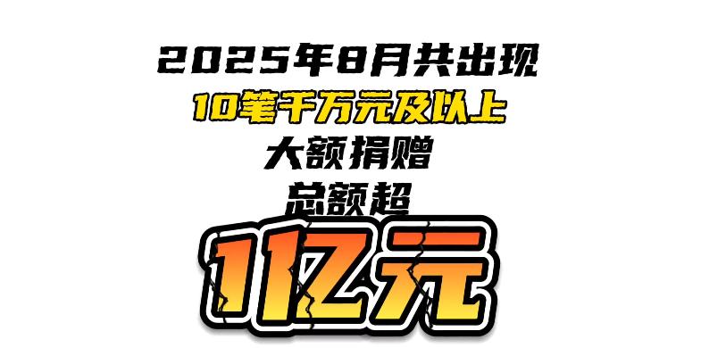 2025年8月大額捐贈一覽:千萬元及以上捐贈下滑明顯,近半流向救災(zāi)領(lǐng)域