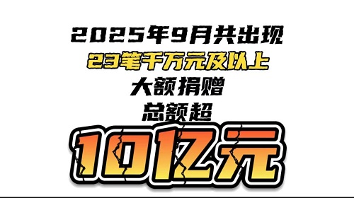 2025年9月大額捐贈一覽:千萬元及以上捐贈超21億元,捐贈總額明顯回升