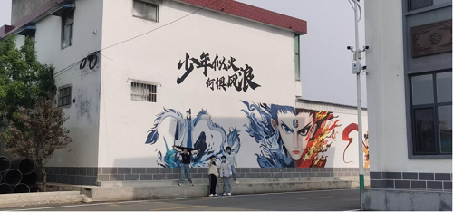 墻上的彩繪,悄悄重塑著村民對家鄉(xiāng)的認同。參與墻繪的志愿者們沒有“單向輸出”審美,而是拉著村民一起動筆:把港澳幫扶的情誼畫進田野,把哪吒的童趣融進巷陌,把村里的紅薯、粉條這些土寶貝變成畫里的主角。墻繪不再是外人眼中的網(wǎng)紅裝飾,而是村民能對號入座的記憶:描過色的孩子會驕傲地指著墻面喊“這是我畫的”。當家鄉(xiāng)的風景、自己的故事被“掛”在墻上,村民對這片土地的感情,也從生于斯長于斯的習慣,變成了“我為它驕傲”的自豪。