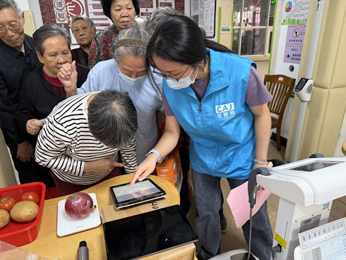 百事員工志愿者協(xié)助老人對(duì)營(yíng)養(yǎng)餐進(jìn)行評(píng)分