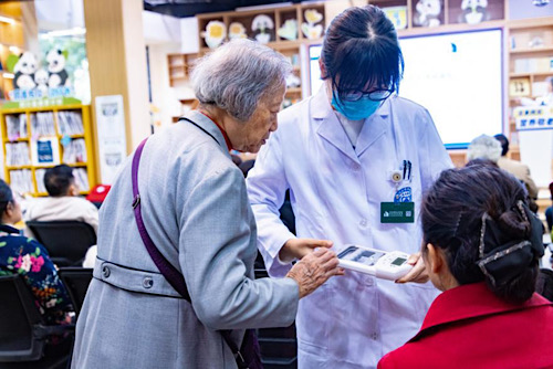 社區(qū)老年人在“健康驛站”進(jìn)行健康自測(cè)