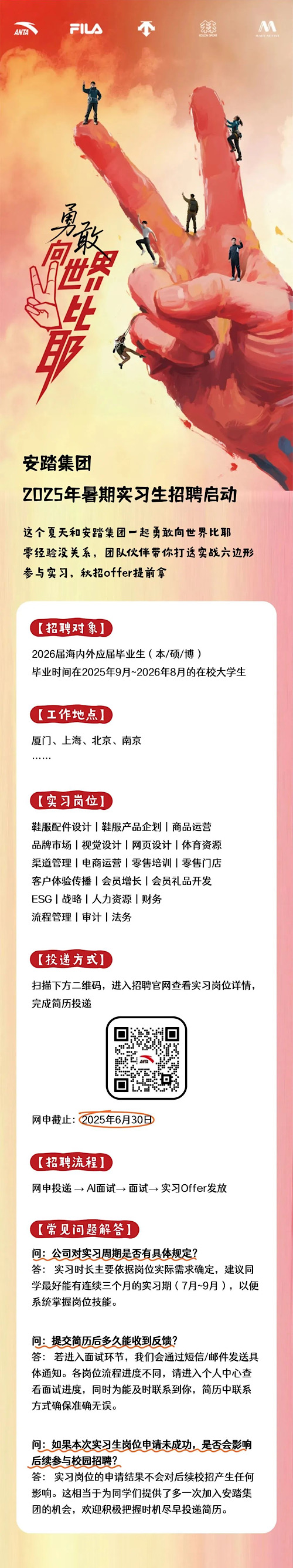 安踏集團(tuán)2025年暑期實(shí)習(xí)生招聘啟動(dòng)