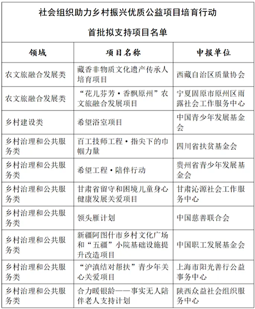 中國鄉(xiāng)村發(fā)展基金會首批擬支持項目名單正在公示中