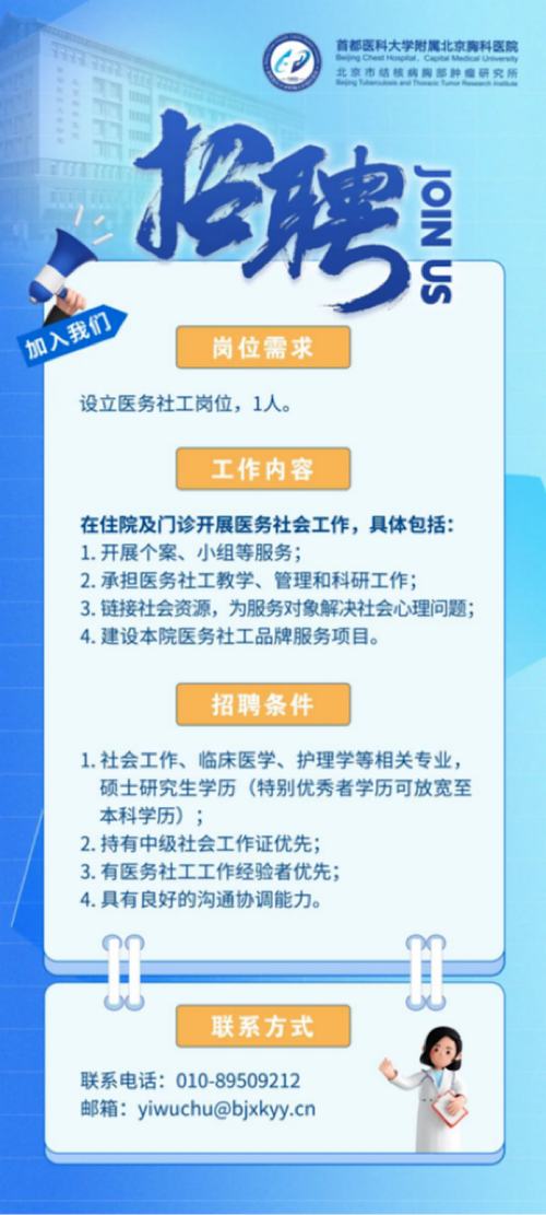 北京胸科醫(yī)院2025年招聘一名醫(yī)務(wù)社工