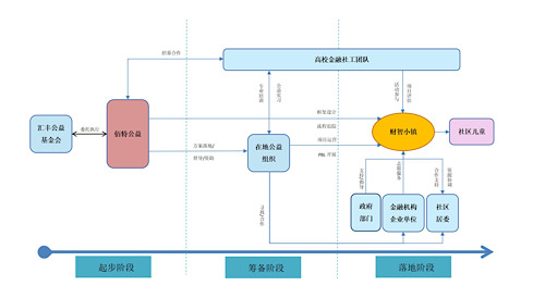 其三,多方協(xié)同的生態(tài)化運(yùn)營(yíng)。項(xiàng)目順利整合社區(qū)、社會(huì)組織、社會(huì)工作者、社區(qū)志愿者、社會(huì)慈善資源、學(xué)術(shù)機(jī)構(gòu)和企業(yè)等主體資源,構(gòu)建起多方協(xié)同的社區(qū)金融教育公益生態(tài)——政府部門(mén)提供政策支持與場(chǎng)地保障,推動(dòng)項(xiàng)目在6個(gè)城市社區(qū)順利落地;企業(yè)方匯豐中國(guó)及其企業(yè)公益基金會(huì)提供重要資金支持。社會(huì)組織上海百特教育咨詢(xún)中心(佰特公益)充分調(diào)動(dòng)自身樞紐角色,負(fù)責(zé)項(xiàng)目藍(lán)本設(shè)計(jì)、資源整合和執(zhí)行落地,并與北京匯豐公益基金會(huì)合力持續(xù)投入產(chǎn)品研發(fā)與專(zhuān)業(yè)師資,為后續(xù)的教具研發(fā)提供有力支持;學(xué)術(shù)機(jī)構(gòu)中央財(cái)經(jīng)大學(xué)社會(huì)與心理學(xué)院則深入項(xiàng)目一線(xiàn),負(fù)責(zé)參與項(xiàng)目督導(dǎo)、智庫(kù)支持和評(píng)估監(jiān)測(cè),確保金融教育活動(dòng)的有效性,并為項(xiàng)目后續(xù)優(yōu)化制定詳細(xì)路線(xiàn)和建議;地方社會(huì)組織(如各地公益伙伴)參與項(xiàng)目共創(chuàng)與落地執(zhí)行,幫助招募活動(dòng)志愿者(如高校學(xué)生、家長(zhǎng)等)承擔(dān)引導(dǎo)、陪伴等工作,結(jié)合地方特色孵化出“小鎮(zhèn)兒童管委會(huì)”、“中草藥創(chuàng)業(yè)”等本土化實(shí)踐形式;各地社區(qū)則為活動(dòng)提供場(chǎng)地并鏈接鄰里資源;家庭通過(guò)資源反哺與參與反饋,為項(xiàng)目提供持續(xù)改進(jìn)動(dòng)力。這種機(jī)制的創(chuàng)新在于主體角色間的互補(bǔ)而非簡(jiǎn)單疊加,形成教育合力(圖為匯豐兒童財(cái)智小鎮(zhèn)項(xiàng)目多元主體協(xié)作圖)。