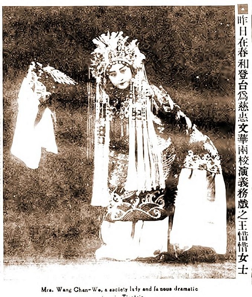 1929年,鶴鳴社在停辦之前為修繕場館,名譽社長孫菊仙等人在春和大戲院演劇二日。袁世凱次子名票袁寒云應(yīng)邀參加,與王庾生、陳虎揚合演昆劇《卸甲封王》《議劍》二劇。1930年,《北洋畫報》于頭版封面刊登了京津著名女票友王惜惜為天津慈惠、文華學(xué)校演義務(wù)戲的戲照。其中指出王惜惜藝術(shù)功底深厚,技藝精湛,獨具表演風(fēng)格,常參與義務(wù)演出,心懷善意:“惜惜女士……幼喜歌舞,天賦珠喉,能镕冶當(dāng)代名伶之精粹于一爐,且善于變化,真妙能入神者也。其音韻之新穎,作工之穩(wěn)健,均為俗流所不能及。”在媒體對馬氏姐妹表演的好評和對王惜惜的報道評語中,都不同程度地暗示女性在文化領(lǐng)域爭取專業(yè)話語權(quán)的努力,也預(yù)示著當(dāng)時社會婦女解放的真實踐行。